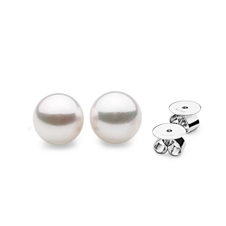 We, Pacific Pearls International use Akoya Pearl which is a saltwater cultured pearls from the Akoya oyster used for necklaces, pendants, rings, bracelets and other pearl jewellery items. Akoya pearls are preferred by most retailers and buyers as the complete pearl choice for its perfect round shapes, bright mirror-like lustre and neutral colours. Our classic AAA quality 8.5-9mm Japanese White Akoya Pearl Stud Earrings are securely hand-mounted to solid 18K white gold posts and comes with a push back closure. Either be a pearl necklace, pearl pendant, pearl bracelet, or even one of your pearl rings, our stunning pearl earrings will endorse it splendidly.