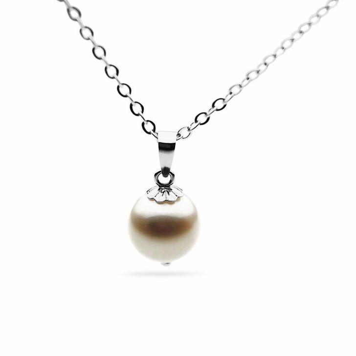 Discover the perfect Pearl jewellery from Pacific Pearls International! Since trust is the utmost importance, our jewellery collections are tested for quality assurance in order to satisfy the demands of our customers. Our Freshwater cultured pearls make an excellent, affordable gift of good quality pearls and are mostly in perfect round shape, and look very similar to Akoya pearls when worn. The very high lustre creates a magnificent glow that marks your presence in the room. Our classic AAA quality 9-10 mm white freshwater cultured pearl pendant are securely hand-mounted to a glistening 18k white gold bail with a free display chain.