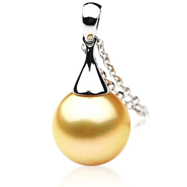 At Pacific Pearls International, We focus on Customer Satisfaction! All our products are fashioned with high-quality pearls that symbolize brilliance without compromising the quality. This simple yet classy perfectly round AAA grade Australian Golden South Sea Pearl Pendant is a perfect accessory for the person who searches for a unique product that satisfies both casual and professional poise. Cultured from the gold lipped oyster, these Golden South Sea Pearls are larger in size with the unique lustre. Our gorgeous pearl pendant showcases a lustrous finish from an 18K white gold bail. This pendant can be paired with your white chain to match your attire.