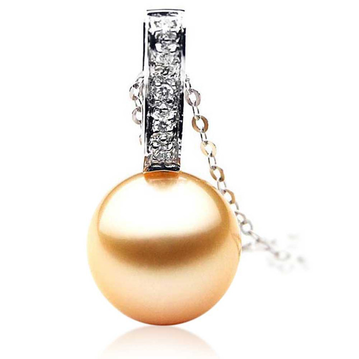 • GP059 (AAA 13mm Australian Golden South Sea Pearl Pendant In Heavy 18k White Gold Diamonds ) Pearl Pendants Pacific Pearls