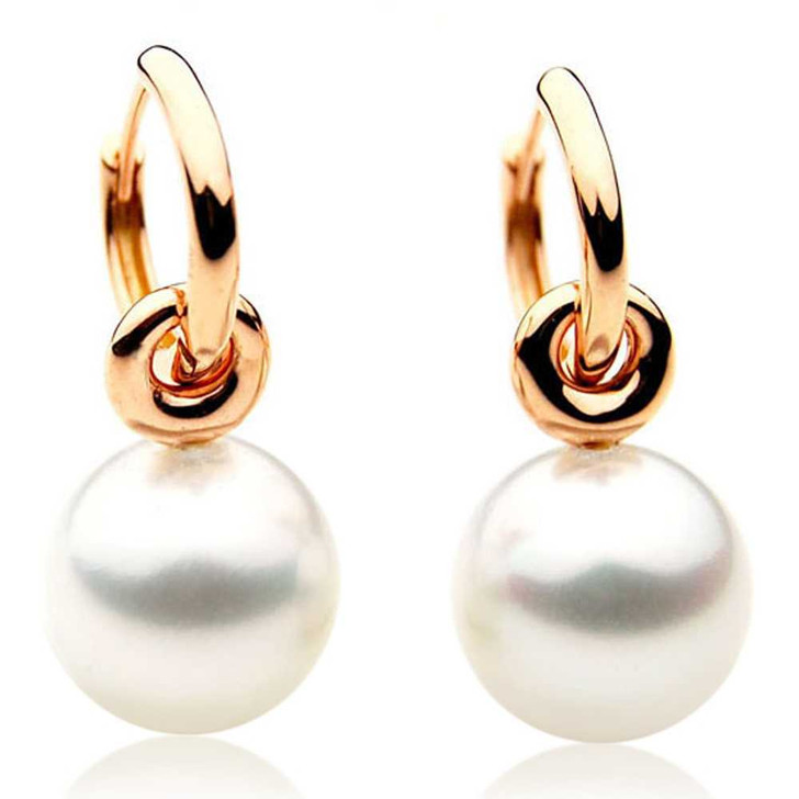 Perfect Round 9.8-10 mm AAA Quality Australian South Sea Pearl Earrings set in 18k (750) Yellow Gold