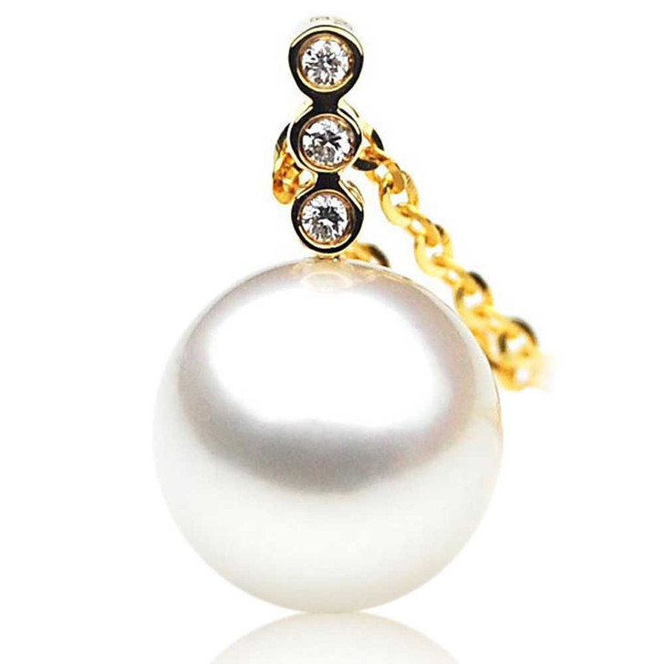 Discover the perfect Pearl Pendant from Pacific Pearls International! Designed with exquisite workmanship, our pearl Pendant will be the perfect addition to any jewellery collection. Composed of natural white colour, the South Sea Pearls showcases exceptional beauty amongst the other traditional types of gems. Found in the depths of the sea, these pearls are highly rare, holding a huge value among other types. Our versatile and trendy pearl pendant hangs from 18k yellow gold. The hold is studded with 3 beautiful diamonds in a perfect way to give you an elegant look.