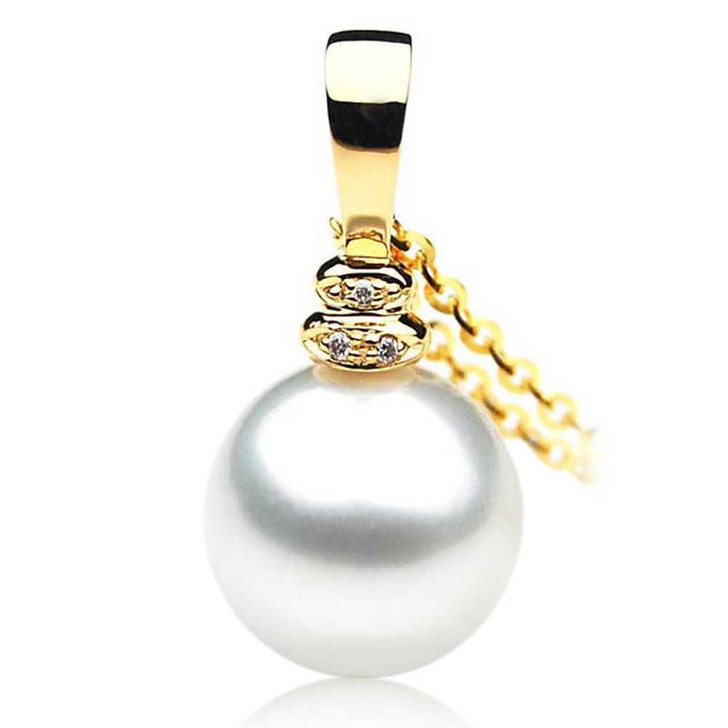 Discover the perfect Pearl Pendant from Pacific Pearls International! Designed with exquisite workmanship, our pearl Pendant will be the perfect addition to any jewellery collection. Composed of natural white colour, the South Sea Pearls showcases exceptional beauty amongst the other traditional types of gems. Found in the depths of the sea, these pearls are highly rare, holding a huge value among other types. The irresistibly sparkling perfectly round AAA grade Australian South Sea Pearls pendant with 18K yellow gold gives a contemporary fashion retaining its quality for years. Studded with 0.03ct brilliant diamonds, our pearl pendant are sure to add style to your outfit.