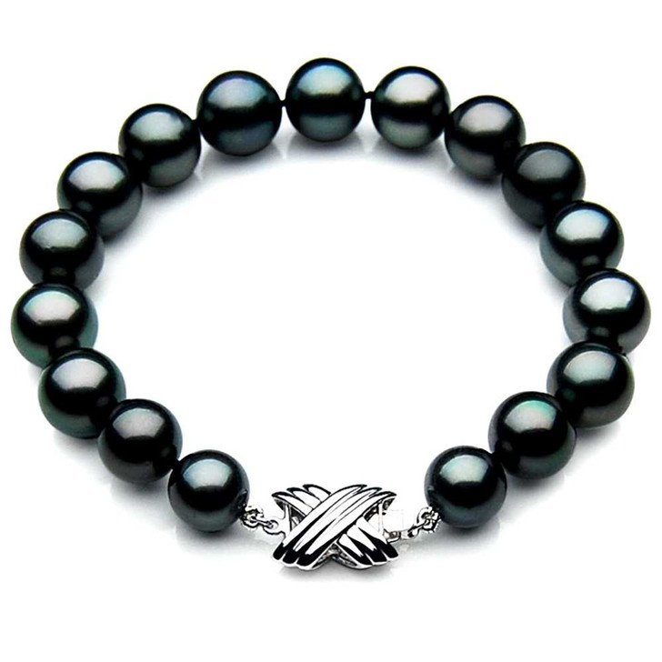 • TB009 (AAA 9-11 mm Tahitian Black Pearl Bracelet 18k White gold clasp 18cm ) Pearl Bracelets Pacific Pearls