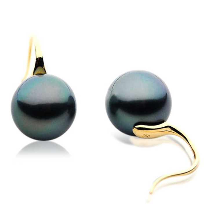 • TE004 (AAA 11mm Tahitian Black Pearl Earrings In 18k Gold ) Pearl Earrings Pacific Pearls